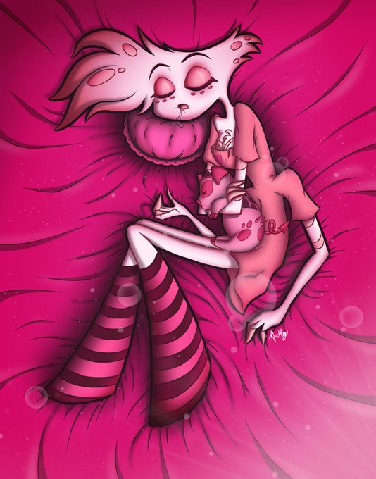 I just finished another Hazbin Hotel drawing, this is my first Hazbin Hotel digital art piece! Angel Dust and Fat Nuggets sleeping peacefully, they're so cute :)