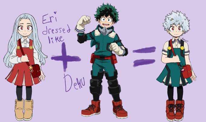 I'm drawing Eri from My Hero Academia dressing like the people who might interact with/inspire her the most. First one, of course, is Deku. Mirio is next and so on. #MyHeroAcademia #fanart