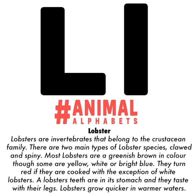Next up L is for Lobster, brilliant illo thanks to @JudeCoram (https://t.co/FZHpCsQNEd) Post Monday 7.30pm GMT with #AnimalAlphabets (last week before the uk clocks go forward one hour!) also be sure to tag us on @AnimalAlphabets so we don't miss your tweets, thanks all!
