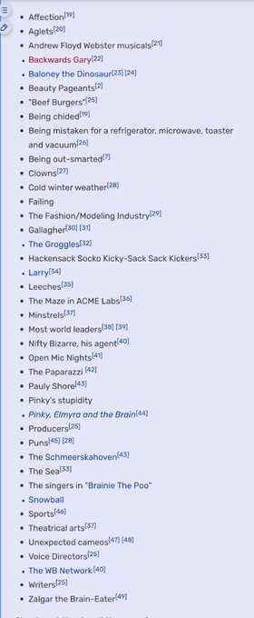 List of things that The Brain hates, as outlined on his article.
