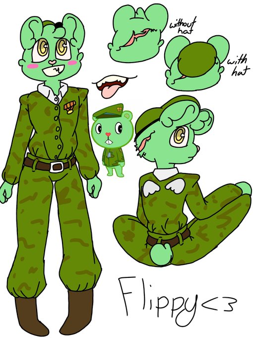 #flippy #htf #happytreefriends #drawing #ibspaint my design for Flippy, I felt the need to give him a scar on his head and small wings on his back then change like his fluff and eyes when her Fliqs out.<3