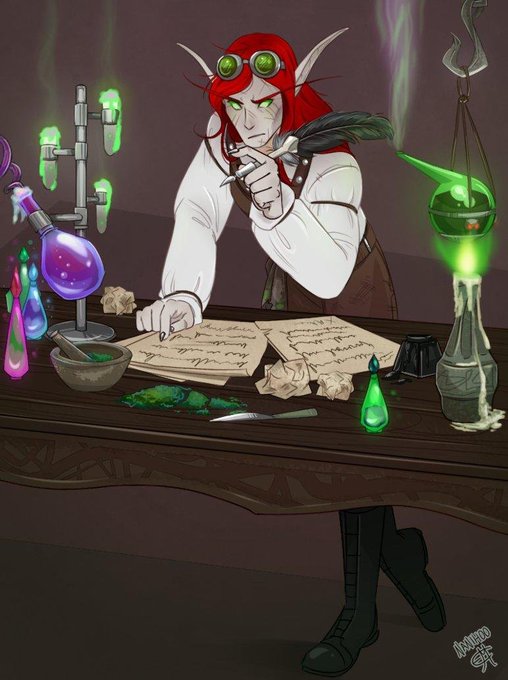 @eliskimm You know, I've had Aniron since 2007, and I never thought about it. Likely because she was my first WoW OC so I put much of myself in her... but she is definitely on the spectrum. Mad scientist (apothecary) with sensory sensitivity ;-; <3