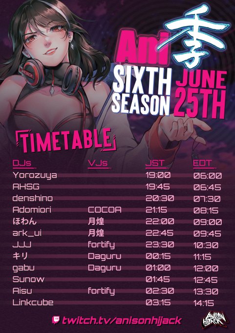 Coming up on March 18th is our next iteration of our #Ani季 Series!, come and catch some amazing japanese talents featuring some of our resident DJs starting at 2000JST/0700EDT