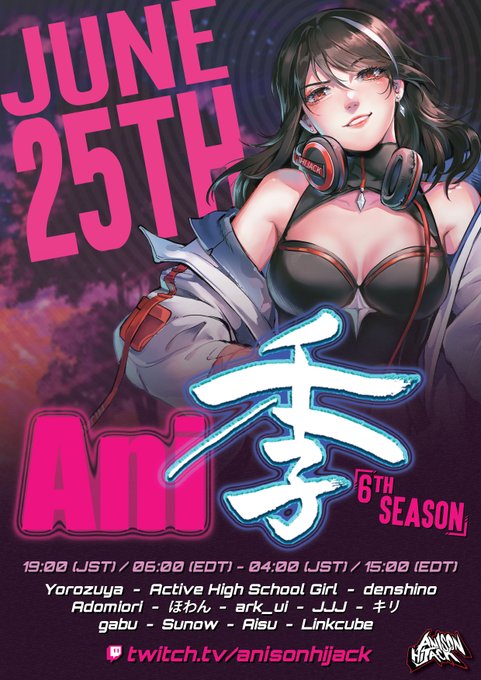The next iteration of our seasonal mega-party, #Ani季 5, is finally here! Catch some of Japan's best talent next Saturday, March 19th, at 7pm JST/5am EDT. Guests will be tagged in the reply!