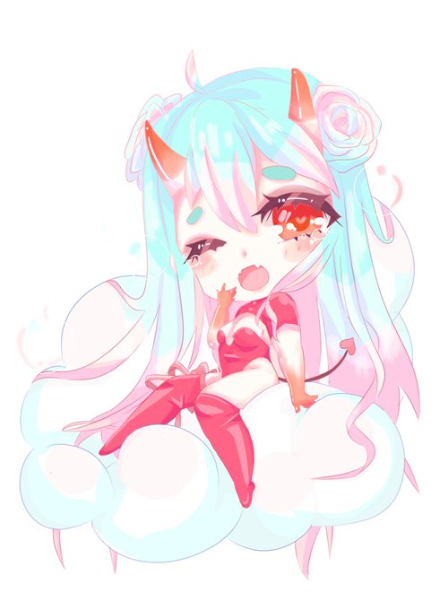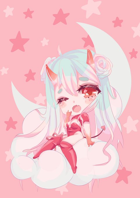 #commissions #commissionsopen #commission #artwork #animegirl #art #artist #digitalart #artistsontwitter #originalcharacter #oc #devilgirl #devil #sleepy #chibi #kawaii #pink #aesthetic