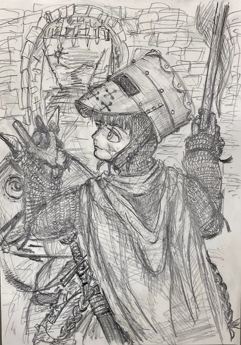 らくがきです(╹◡╹) 萌え袖ガータールーズソックス要素をとりいれた鎖帷子…(*゚▽゚*)