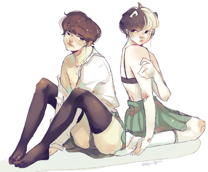 People being pressed about BTS being gay kings motivated me to draw Taegi and Minjoon in skirts 🤩