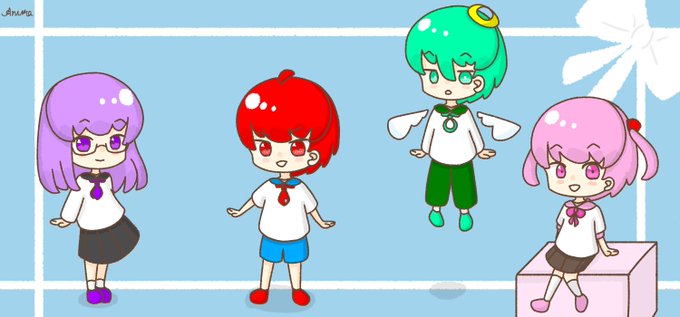 #創作 アヌラ、雨音、アンジュ、桃歌の集合イラスト〜(*´∀`*) 服装を1部変更しました〜!
