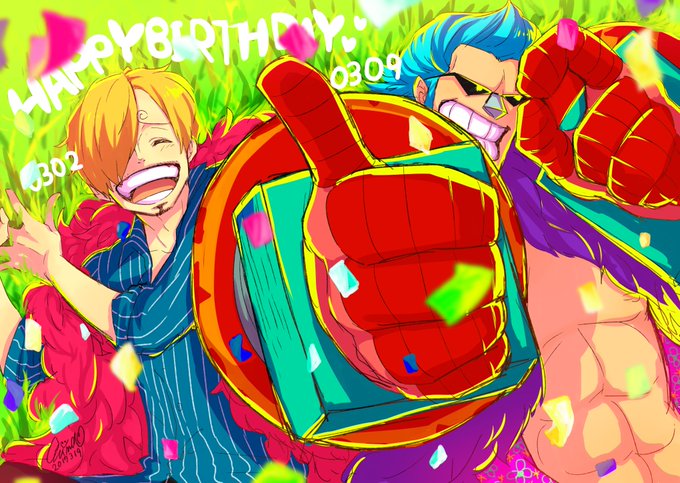 サンジとフランキーの誕生日お祝いできなかったので、今更だけどイラスト描きました!おめでとう!! #サンジ生誕祭2017 #フランキー生誕祭2017