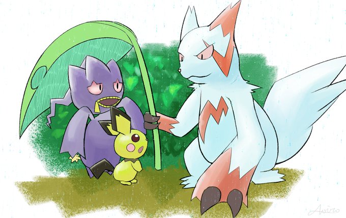 この傘を君たちに #ポケモン版深夜の真剣お絵描き60分一本勝負 3匹で参加させていただきました。