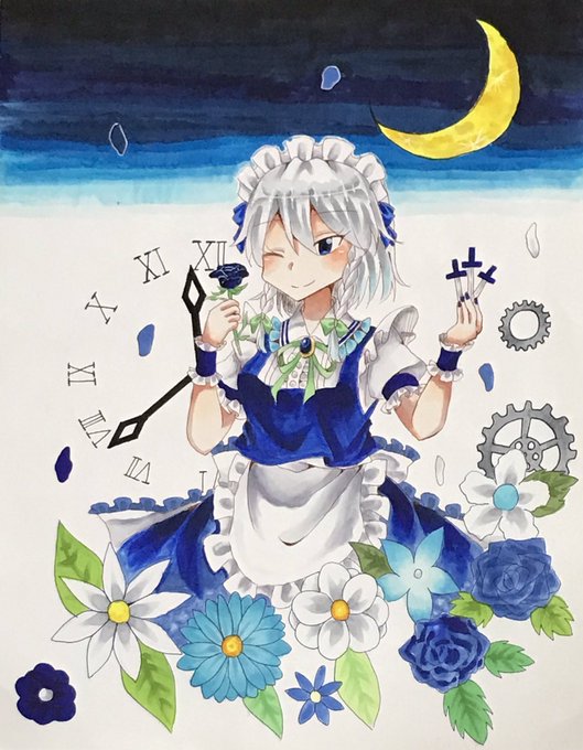 #イラスト #東方project #十六夜咲夜 十六夜なので咲夜さん描きました