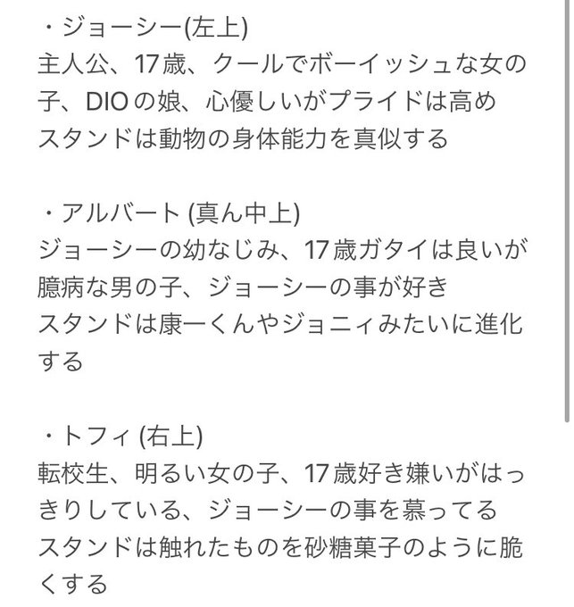@Ri_1124r おぉ!じゃあこの子で!名前はトフィで、ハキハキしてて、明るい女の子!絵はジョジョコレのトレスしか無かったごめん💧