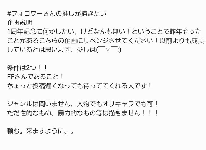 企画の方は、もし誰からも来なかったらそっとツイ消しします。。(2枚目必読!!)