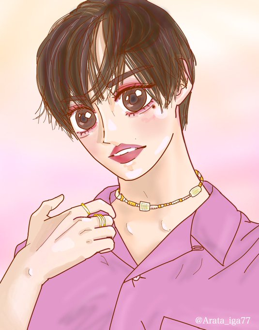 色塗りこれからするのメチャ楽しみなの〜🥰色塗り明日まで待ちきれなくて寝る前に1分くらいでテキトーにペっぺ〜ってぴんくで染めてみたらそれだけでもうなんか可愛くて。線だけ描いた時点ではしょぼすぎて情けなくてもうなんか本物の新くんに到底及ばなかったけど色載せるといいな〜やっぱ