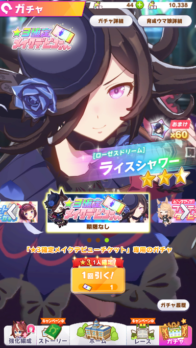 レジェンドレースでピースが貯まっていたので女神像投入。 テイオー強いと思うんだけど、育成失敗してるからそのうちちゃんと育てたい。