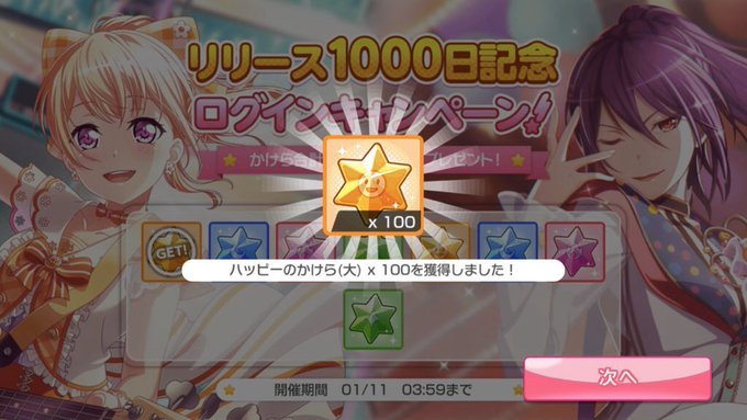 (못또걸파 작가님의 200화 축전/릴리즈 1000일 기념 로그인 보너스 창에 함께 등장한 카오루와 치사토)