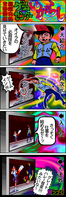 ゲームの世界に入って戦う開祖は『ゲームセンターあらし』で、その血脈はコロコロ&ボンボンに枚挙に暇がないけれど、ファミコン通信1994年1月7/14日号から連載を断続的に開始した『ゲームセンターいがらし』は最高だった。ツボを抑えた構成とギャグ。オイラは多感な中学生であったから大ウケでした。🤣