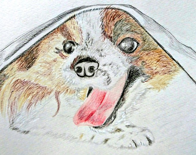 #色鉛筆画 #イラスト好きな人と繋がりたい #アトリエの系譜 #犬 久しぶりに動物かいた(*´ω`*) まだまだ精進せねば♪