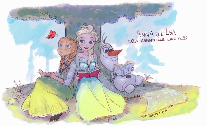 이렇게 화창한 날, 책을 보려니 너무 따분해. 우리 샌드위치 언제 먹어? 책 펼친 지 1분밖에 안 지났어. 안나. 여왕은 웃으며 올라프의 뒤집어진 책을 똑바로 쥐여 주었다. -Arendelle Life 3