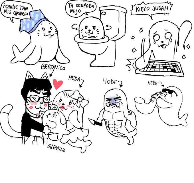 Garabatos de mi amigo FocaGamerr (Hedo seto) que su oc es una foca y le hice algunos garabatitos en su honor!!