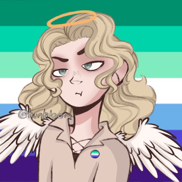 angry angel and his chaotic demon boyfriend, clyde is in his human form because the picrew didnt have his skin color, he's normally green.