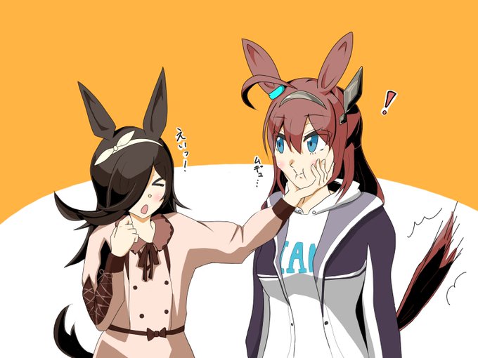 イタズラというスキンシップを試みるライスシャワーさんとミホノブルボンさんを描いてみました。