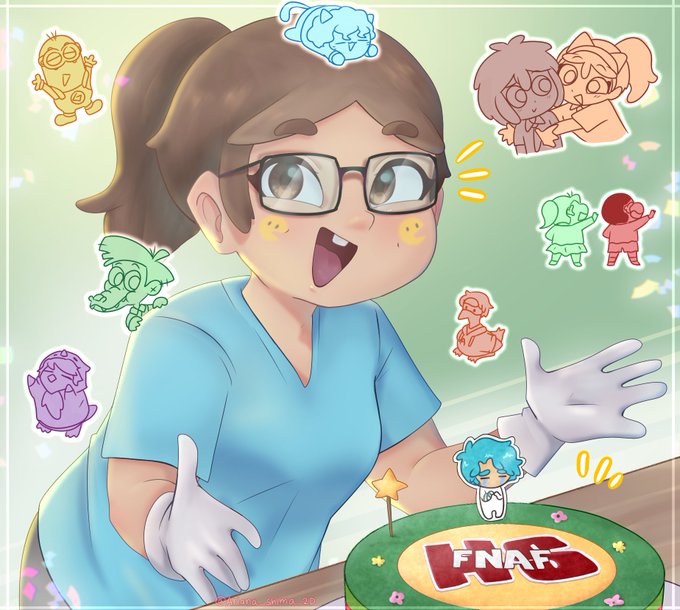 Ahi ta mi dibujito por el cumple de freddy y fred 💙 Fred feliz porque habrá spaguetti al llegar a casa, asies. #fnafhs #fhsz3r0