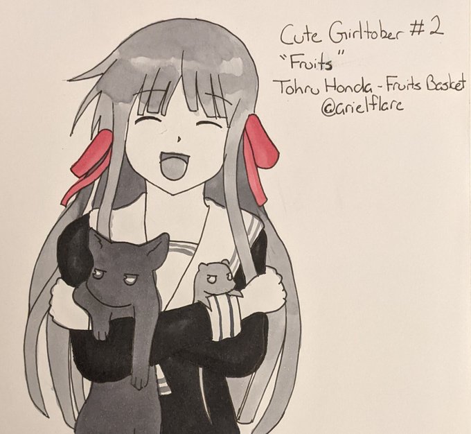 Today's Cute Girltober Prompt is "Fruits" so I drew Tohru Honda from Fruits Basket! I added Kyo and Yuki in their animal forms cause. Why not?