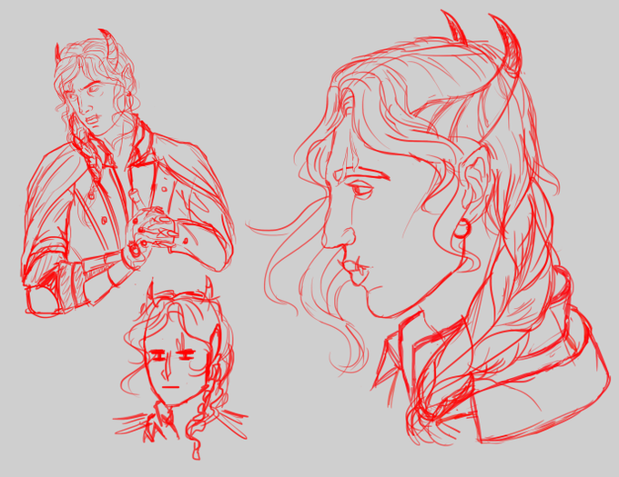 Here are a few examples of my sketch-style, which is a little more loose and messy than a finished work.