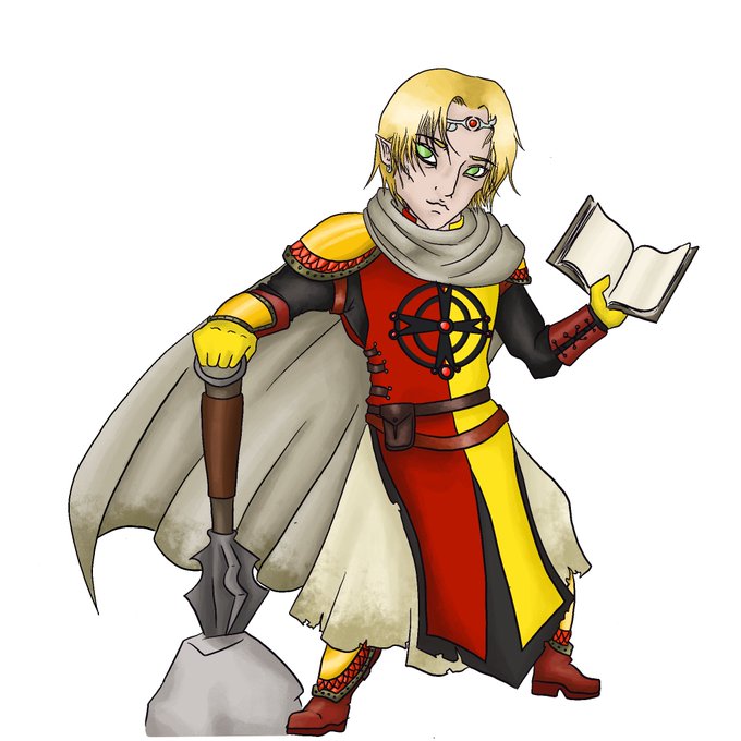 I tried something different for the colours, but it still took way longer than I wanted... first character done, my AD&D 2e cleric/wizard half-elf whose name I cannot recall!