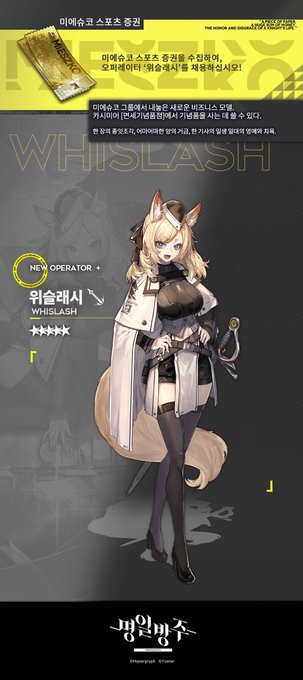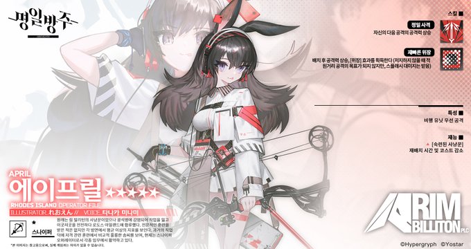 ※ 본 오퍼레이터는 4/30 (금) 점검 완료 후 게임 내 업데이트되며 채용 경로, 일시 등 상세 사항은 차후 별도 공지를 통해 안내드리겠습니다.