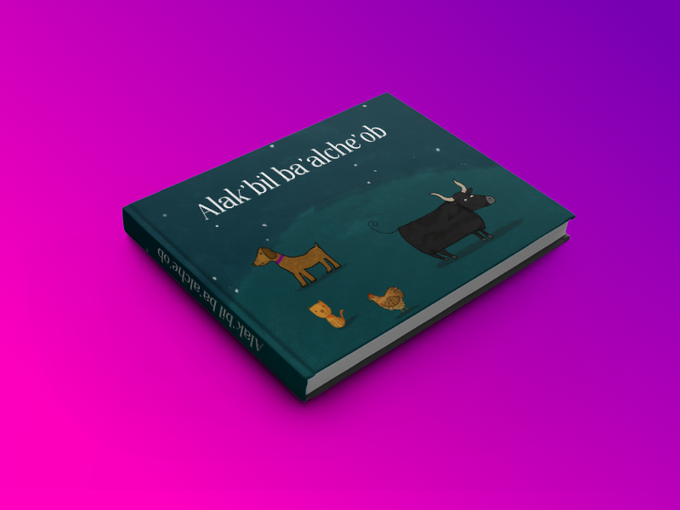 Ilustración de unos libros para niños en lengua Maya.