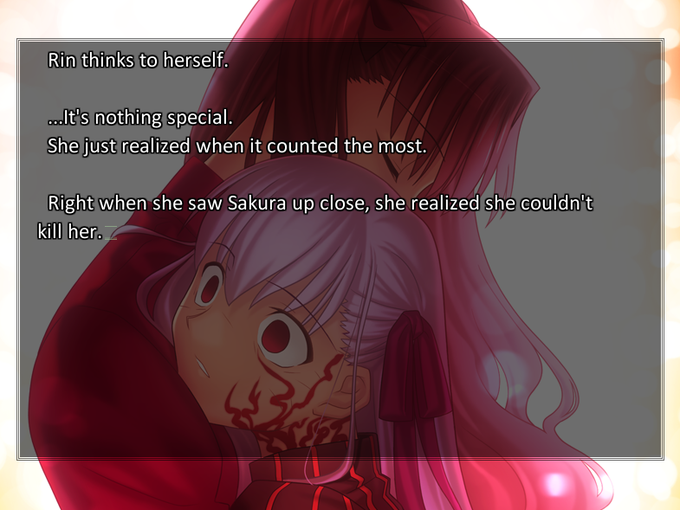 It's really cool how she was your reliable ally for 2/3 of the VN and now it comes to this Also nice callback to the fight in the Fate route