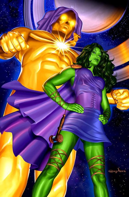 @GailSimone She-Hulk and Powergirl breaking the 4th wall with legal shenanigans at Starr Enterprises.