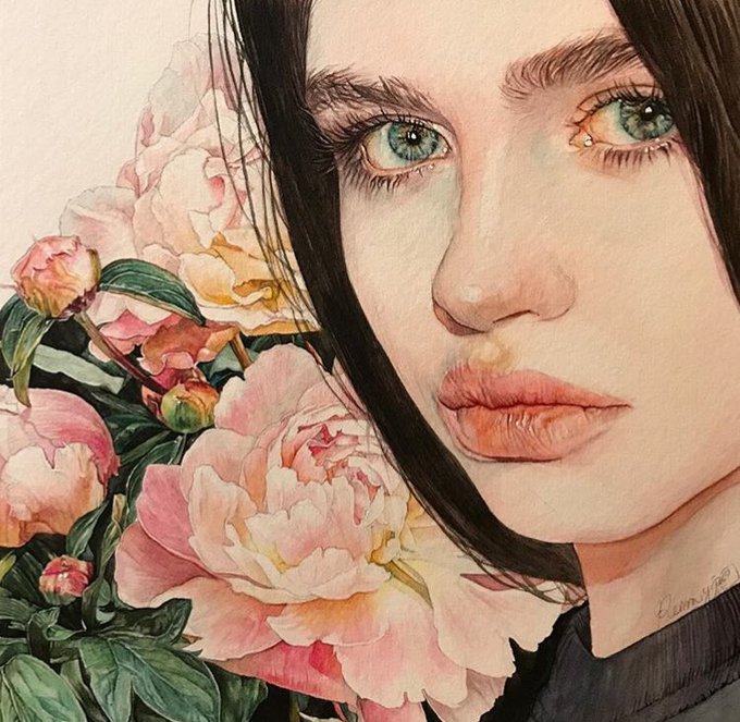 بورتريهات للفنانة اليابانية رينا يامادا متميزة في الرسم بالألوان المائية