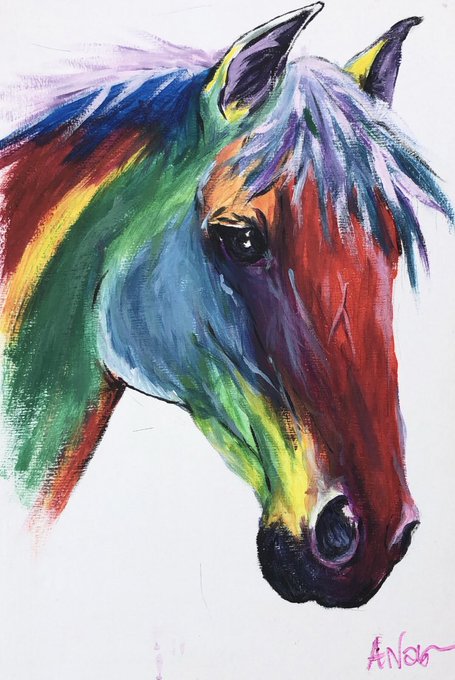 My speciality is acrylic and watercolour rainbow art on canvas. I do generic and pet portraits in this style #rainbowart #petportrait #equineart #abstractart #artistsontwitter #acrylicpainting #frodoncomission #artshare #dogart