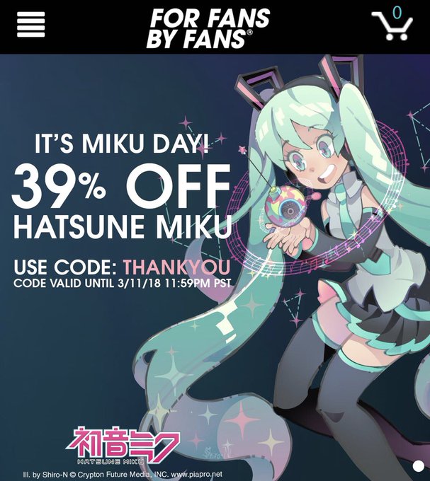 https://t.co/vcWeBayyd2 is celebrating #hatsunemiku day with 39% sale on my Miku products. Use the code: “thankyou” to enjoy the discount.