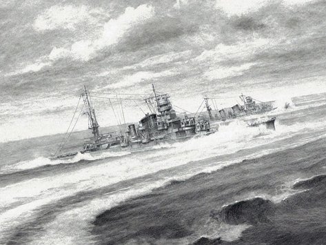 重巡洋艦「古鷹」が発見されたので、作品背景に描いた同艦を。後ろは「衣笠」。作品は #鉛筆画 「海征く牙狼 -重巡洋艦 加古 2602-」(日岡神社(加古川市)奉納作品)。#重巡洋艦古鷹 #鉛筆艦船画 #重巡洋艦加古 #菅野泰紀 https://t.co/CVVxkro2om