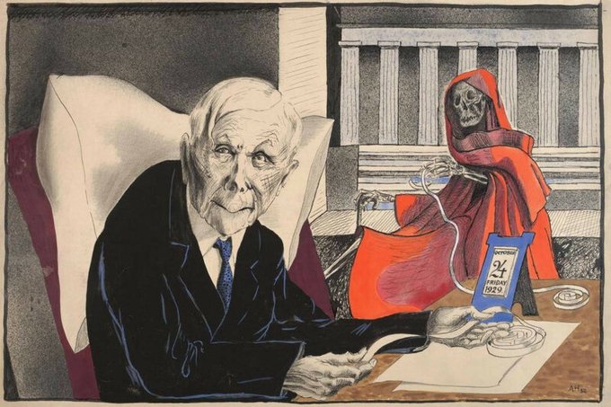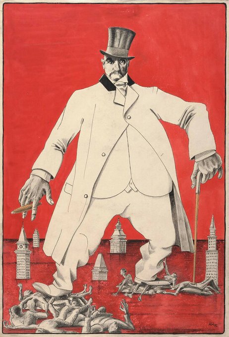 Adolf Hoffmeister (Czech, 1902-1973). Caricatures of American capitalists JP Morgan and John Davison Rockefeller and the trail of death that followed them.
