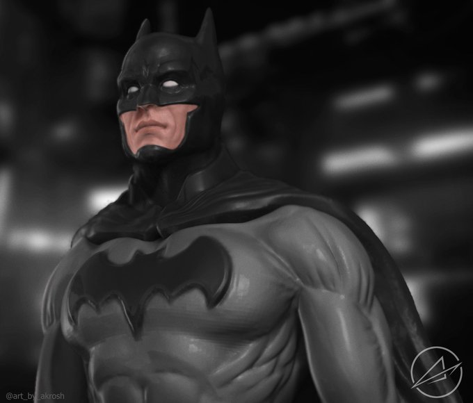 Batman sculpt that I did...a process video will be up on my YouTube channel once I get around to stitching everything together. Oh and the background was generated using a free AI program called craiyon. Post processing was done using @Krita_Painting .