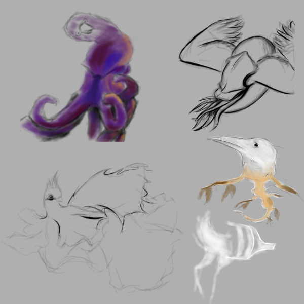 Here's a couple of things I played around with today. Going live to finish up my mermaid for sketch showdown. If you like these guys feel free to stop by and check out the progress on her. :)