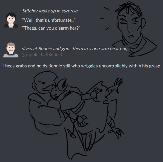half the party got into a fight with a nasty creature that resulted in some unwilling pvp, and i had to illustrate some of it, but it wouldnt make sense to post just these snippets so i patched all of it together for your reading pleasure!