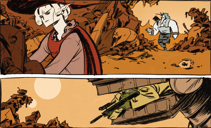 A panel preview with Luger trying to get handsy on Ruger but doesn't look like he's having any of that.