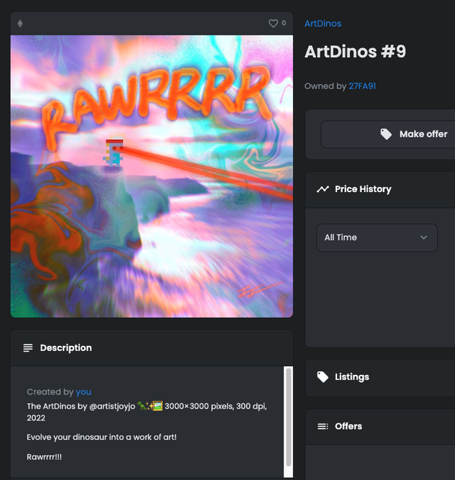 @arincannes Here's your Rawrrrring dino, 디파이! See you at #NFT생생정보통 😘