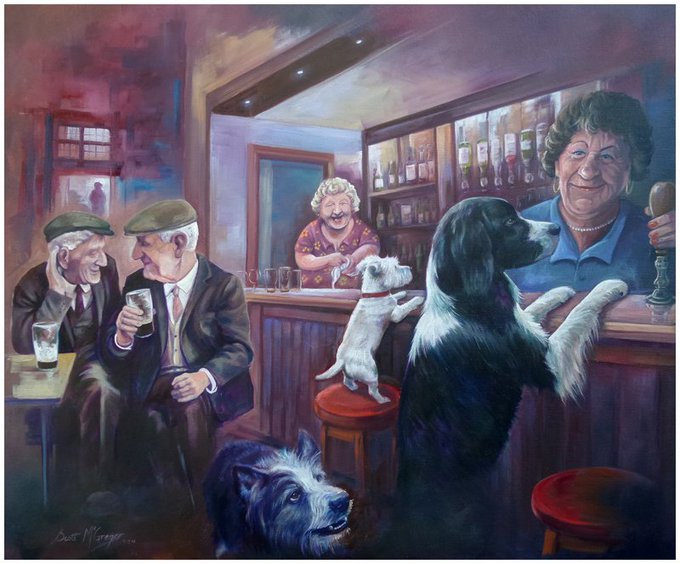 My new painting called, 'Needing The Hair Of The Dog' oil on canvas size 60 x50cm #dogs #ayrshire #oilpainting #pub