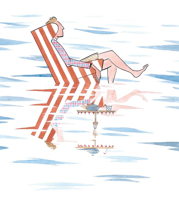 This feels like a wonderful relaxing dream. Chilling in the sea, funky armchair, and a drink. I'm surprised that I'm yet to see this in real life.