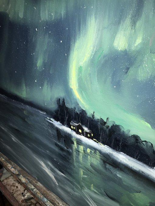 Some phone shots of my first ever painting of the #AuroraBorealis