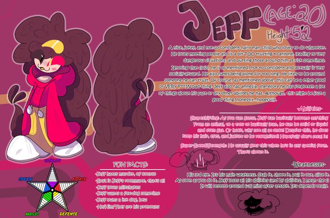 I forgot what to say here. Um, Jeff. Yeah, just Jeff. He has a new ref, a attempt at his back, and a less colorful looking ref which is sad. Ummmm, oh yeah tags.