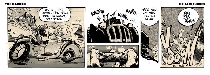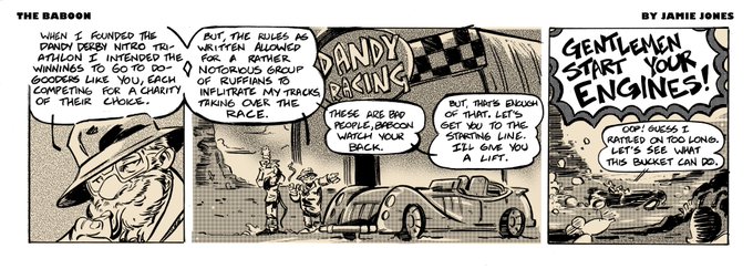 #webcomic #comicstrip #thebaboon #pulpheroes #racecars #actionadventure #comicbooks #bowtieguy #bowtiepress