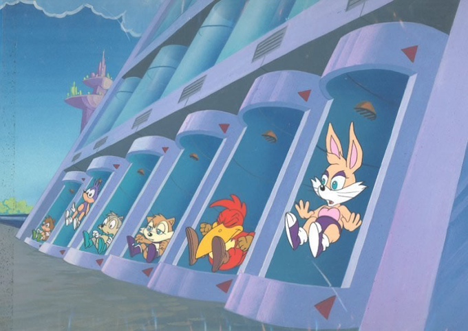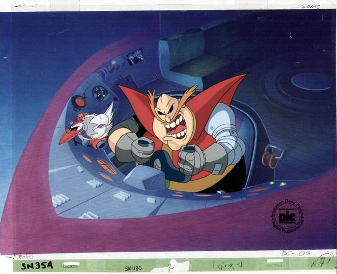 Unused Animation Cels for the scrapped intro to Sonic SatAM, which a full storyboard sequence for it can be found on the now out of print Shout Factory DVD Box set as a bonus feature. A 10 second clip of it does exist, and was shown at the 1993 Summer Consumer Electronics Show